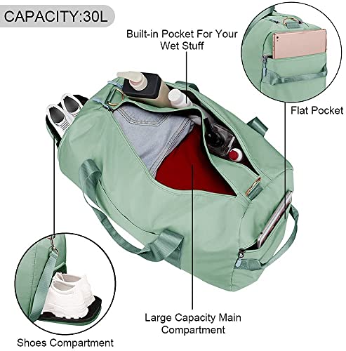 【Bonus Points】①Moist separated compartment is specially designed for storing wet items or dirty clothes after exercise, such as socks, underwear, swimwear, towel or swimming goggles.② It comes with removable grip handles and padded, adjustable, removable shoulder strap.③A separate shoe compartment can help you carry and keep your shoes better in your travel bag,even if it is dirty and the other objects still won’t get stained.