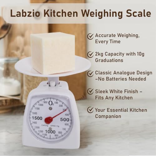 The LABZIO Analog Weighing Scale is a reliable tool for kitchen, laboratory, and craft use. With a 2kg capacity and 10g graduation, this accurate weighing scale ensures precise measurements for various applications, from cooking to scientific experiments. Featuring a durable design and an easy-to-read dial, it’s perfect for everyday use. The white scale is compact and portable, making it ideal for homes, classrooms, or workshops. Whether you’re measuring ingredients, conducting experiments, or crafting, this scale provides dependable results every time. Key Features: – 2kg capacity with 10g graduation – Ideal for kitchen, laboratory, and craft use – Compact, easy-to-read dial for everyday accuracy – Durable and portable design