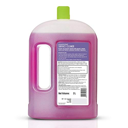 Amazon Brand – Presto! Disinfectant Surface & Floor Cleaner Liquid | Lavendar | 2 Litre | 1 Can | Kills 99.9% Germs | Removes Stains | Safe On Hands