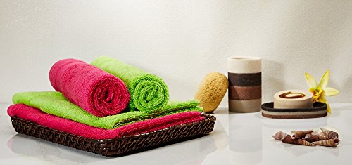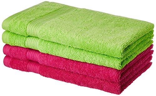 Amazon Brand – Solimo 100% Cotton 4 Piece Hand Towel Set, 500 GSM (Spring Green and Paradise Pink)