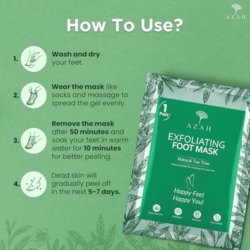 Azah Foot Mask Peeling Feet Mask [Pair of 1] | Foot Peel off Mask for Cracked Feet | Peeling and Exfoliating | Legs care at Home | Exfoliating Sheet for Home | Tea Tree Sheet