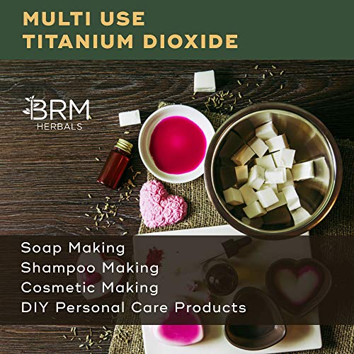 MULTI USE: Cosmetic Grade Titanium Dioxide powder used as a raw material for your cosmetic brand or DIY use to make products such as facial mask, face and body scrubs, lotions, creams, moisturizers, serums, body butters, hair and skin care products, pressed powders, liquid foundation, mascara, deodorant soap, shampoo making and many more beauty and make up products.