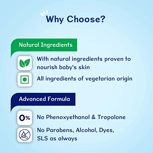 Advanced Formula as It’s Phenoxyethanol Free: Phenoxyethanol is a commonly used preservative, the excess usage of which is suspected globally to cause skin irritation and allergies on babies’ sensitive skin