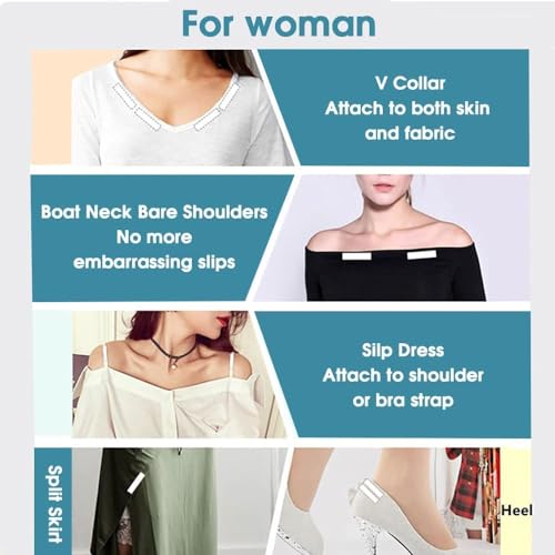 – KEEP CLOTHES STEADY : double-sided tape will keep your clothes and skirt hemlines closer to your undergarments and skin, which can shape all your outfits(including clothes styles of V-Necks, backless, strapless dresses, hidden bra straps and more)to keep them refined, classy and elegant all day long without embarrassing slips, visible straps or sagging necklines.