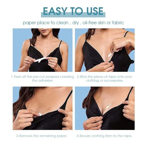 – DOUBLE SIDED TAPE :This tape was designed not to ruin your silky and delicate fabric. Double sided sticky design keeps you completely comfortable all day long so no more awkward adjusting and give your clothes a great fit every time.