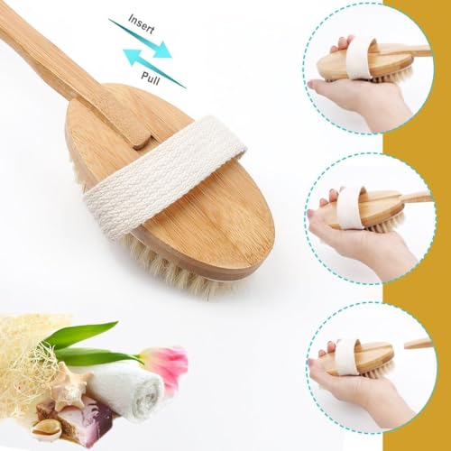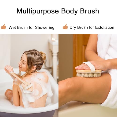 Detachable Wooden Bath Brush with Long Handle – Natural Bristles for 2-in-1 Wet & Dry Brushing Exfoliation, Blood Flow Stimulation – Body Scrubber for Smooth Skin & Reducing All Skin Types (Bath Brush)