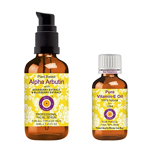 CONTENTS – Plant Based Alpha Arbutin Face Serum 30ml & Pure Vitamin E Oil 10ml