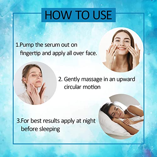 HOW TO USE:- 1. Wash your face then pat dry 2. Pump the serum out on a fingertip & apply dots all over face 3. Gently massage in an upward circular motion until completely adsorbed 4. USE DAILY – for best results apply directly on your face, twice a day as a moisturizer. It will naturally nourish your skin, make it healthy, glowing and hydrated.