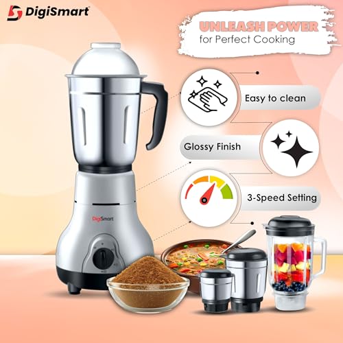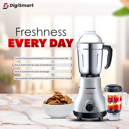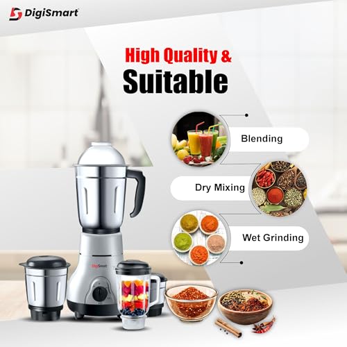 ✅SHOCK-PROOF ABS BODY: To Ensure The Greatest Safety When in Operation, The DigiSmart Mixer Grinder Features Shock-Proof ABS Body. This Helps to Perform Top-Quality Grinding With Least Risk of Injuries Triggered by Overload or Shock. The Whole Machinery of This DigiSmart Kitchen mate Mixer Grinder Is Totally Shock-Proof and Safe.