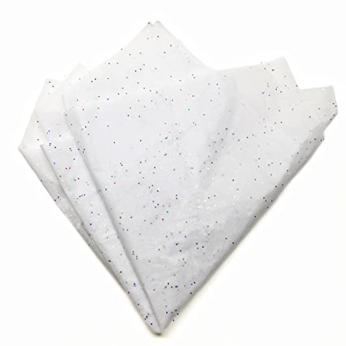 ECO SARRAS WHITE WITH MULTICOLOR SPARKLES [GLITTERS] MULTI-PURPOSE WRAPPING PAPER | 20×20 Inches | USES GIFT WRAPPING, STUFFING BOXES, HANDBAGS, SHOES ETC (40 SHEETS)