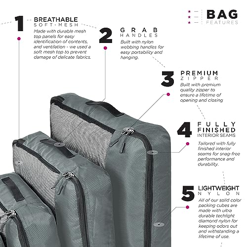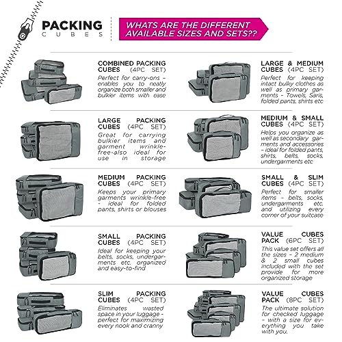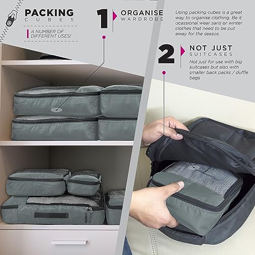 FATMUG Packing Cubes Travel Pouch Bag Organiser Set of 8 (2x Large-Medium-Small and Slim) – Grey, Fabric
