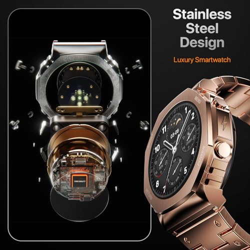 Stainless Steel Design- Stainless steel straps with a luxe design provide an elegant look to the watch. Its rotating crown and 2 button pushers offer seamless navigation across all the apps.