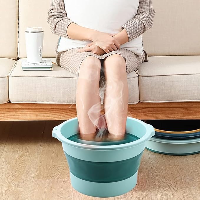 - The reusable tub has a convenient space saving design for efficient storage. To keep your foot properly inside the bucket. It collapses to a compact height, making it easy to keep in your home, garage, or packed in the car with your camping gear.