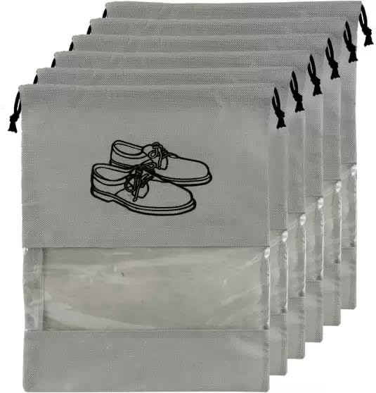 The HSPL Shoe Bag for Travel & Storage is the ideal solution for keeping your shoes organized and protected during travel or in your home. This pack includes 6 high-quality shoe pouches, each measuring 13 x 17.32 inches, which can comfortably fit most shoe sizes, from sneakers to dress shoes. Key Features: Durable Material: Made from premium, breathable, and waterproof fabric, these bags are designed to protect your shoes from dust, dirt, and moisture. Travel-Friendly: Perfect for storing your shoes while traveling, ensuring they stay clean and separated from other items in your luggage or suitcase. Multipurpose Use: Suitable for both women and men. Ideal for shoes, but can also be used to store other accessories such as toiletries, clothing, or even electronics. Space-Saving: The compact design ensures that the bags are easy to pack, helping you save space and stay organized. Pack of 6: Enough to accommodate multiple pairs of shoes for various types of travel, from casual to formal occasions. Easy Access: The convenient drawstring closure makes it easy to open and close the bags while keeping your shoes secure inside. Whether you’re going on a trip or simply organizing your closet, the HSPL Shoe Storage Organizer Bags are the perfect way to keep your footwear clean, organized, and ready to wear.