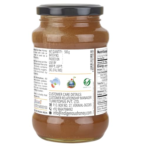 Package Content: 1 Raw organic honey; Quantity: 500 g; Ingredient Type: Vegetarian; Shelf Life: 547 Days