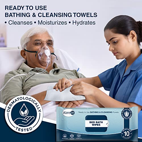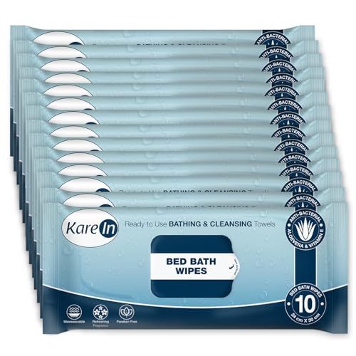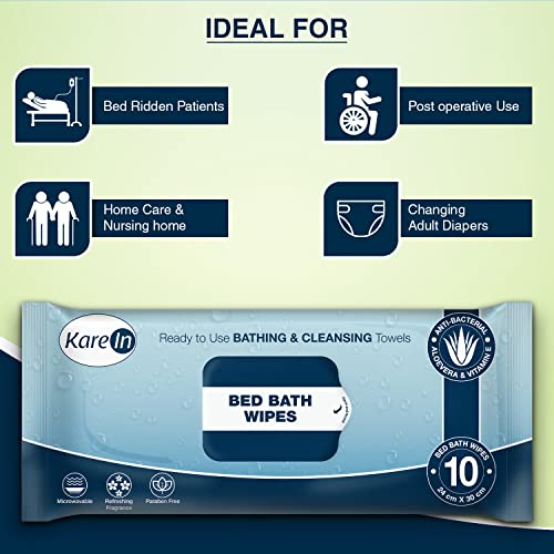 KareIn Bed Bath Wipes, Adult Wet Wipes, Adult Bath Wipes, Anti Bacterial, Ready To Use Cleansing Towels, Refreshing Sponge Bath Towel, For Men & Women, 120 Wipes, Pack of 12