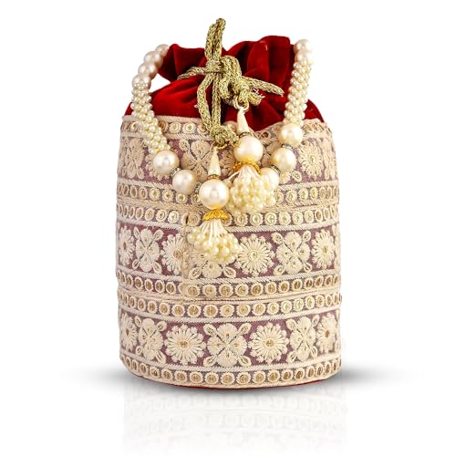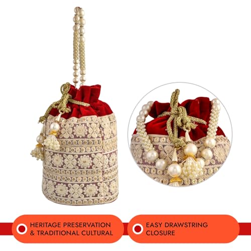Kuber Industries Potli | Velvet Wedding Potli | Beads Handle Potli | Wallet Potli | Christmas Gift Potli | Baby Shower Potli | Lucknowi Potli | Embroidery Potli | Red
