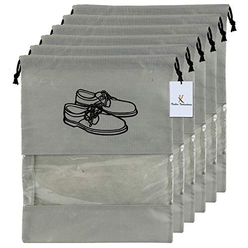 Kuber Industries Shoe Cover/String Bag Organizer|Shoe Print & Non Woven Material|Transparent Window|Size 43 x 30 Cm, Pack of 6 (Grey)-CTMTC039482