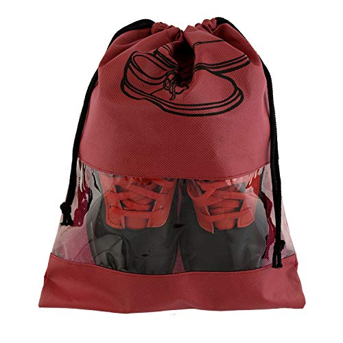 Kuber Industries Shoe Cover/String Bag Organizer|Shoe Print & Non Woven Material|Transparent Window|Size 43 x 30 Cm, Pack of 6 (Maroon)-CTMTC039494
