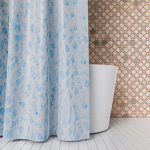 Kuber Industries Shower Curtain | Water Drop Design Peva Curtain for Bathroom | Shower Curtain for Bathroom | Bathroom Shower Curtain with Hooks | 6 Feet | Blue