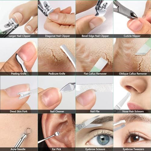 Versatile Functions: The kit serves multiple purposes, including hand care, facial care, and foot care. Use it for manicures, pedicures, eyebrow shaping, anti-acne treatment, and exfoliation, allowing you to maintain your personal grooming and skincare in one convenient package.
