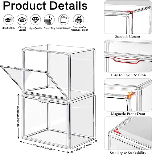 🎮HUMANIZED DESIGN:The acrylic storage is equipped with a magnetic door which easy to open and close them with one-handed operation. There is a slot design on this purse storage organizer which make stacking more stable, it can use alone or together.