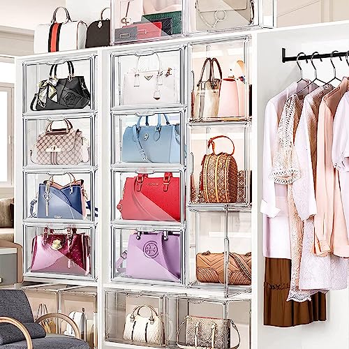 👠CLEAR & DUSTPROOF: The acrylic boxes for display have high transparency. The organizer for purse is perfect for store and display your handbag, shoes, toys, hats, books, etc.. Keep your handbags and other shiny and bright at all times.