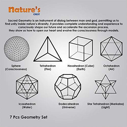 As shown in the pictures, the 7 Platonic Solid Geometric Shapes include: