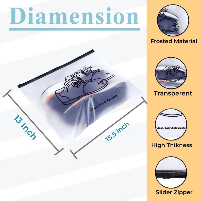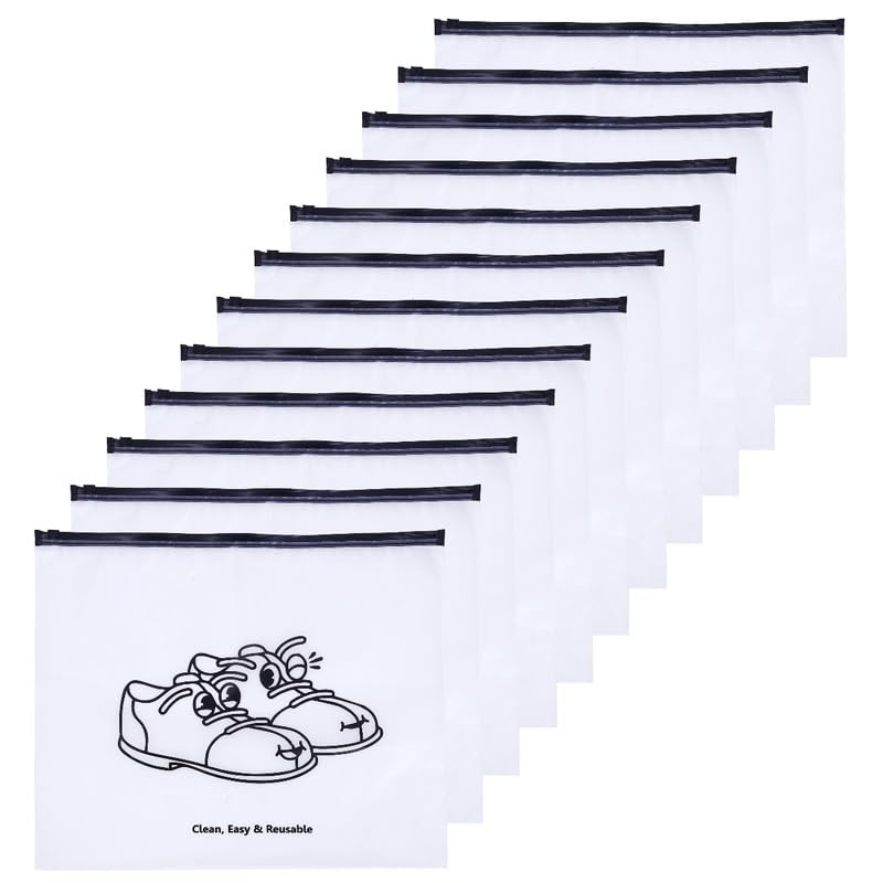 Travel Shoe Bag,Clear Ziplock Storage Bags Frosted Zipper Bags for Clothes/Shoes/Toiletries/Luggage/Undergarment/Cosmetics Storage Bag (Pack of 12)