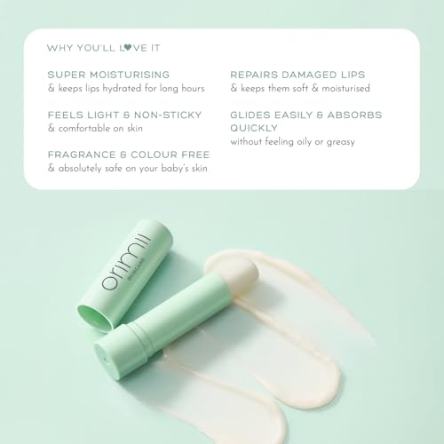Orimii First Kiss Lip Balm for Moisturizing Dry Lips | Light, Non Sticky & Nourishing Lip Balm | Fragrance & Colour Free – Safe For Mom & Baby