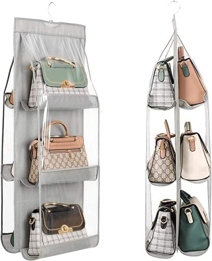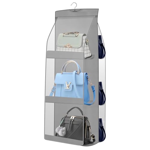 OxbOw 6 Pocket Bag Organiser for Wardrobe Purse Clutch Handbag Storage Organizer Bags Holder with Hanger, Ladies, Women, 90 X 35 X 35 Cm, Grey