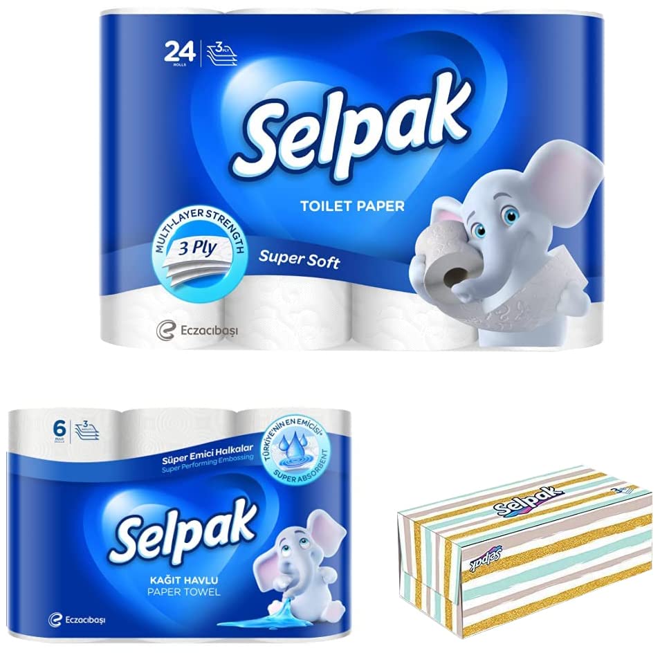 Cushiony soft Selpak Toilet Paper is perfect for your family’s personal hygiene and health. 3-ply Selpak Toilet Paper is ideal for all of your personal hygiene needs – even the most delicate ones! It’s thick and absorbent and doesn’t dissolve in your hand when wet and only dissolves after flushing.