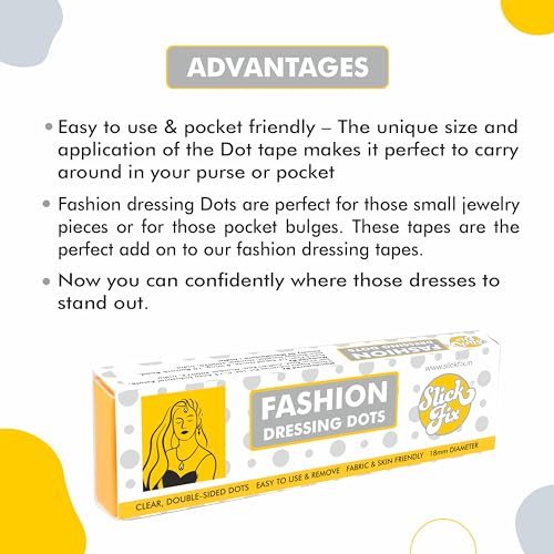 SLICKFIX Fashion Dressing Dots Tape -(Trial Pack of 18) Double – Sided Round Fashion Tape for Clothes,Skin Friendly Adhesive Body Tape, Body Tap for Women and Men