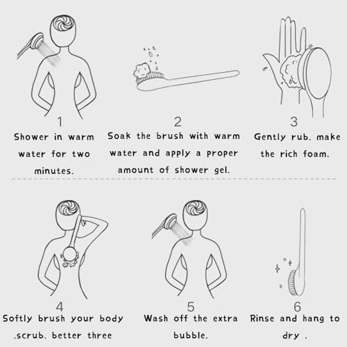 With this shower brush, deep cleansing removes dead skin cells, dirt, excess oil from your pores, reduces your blackheads and other skin problems. Using this bath brush to brush your body promotes your blood circulation, lymphatic circulation and boost your metabolism. Having a home spa with this exfoliating brush will lessen your body stress, relieve your fatigue, ease your tension and relax your muscles, which is also good for your sleep. Regular skin care with the exfoliating shower brush makes your skin plumper, smoother and glowing like baby skin.