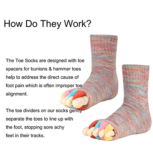 SPORLCO Toe Separator Socks for Men Women Comfy Foot Alignment Sock Massage Health Care Bunion Socks Yoga Sports GYM, A Multicolor, Medium