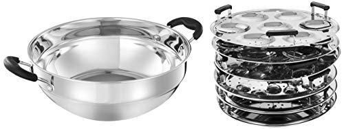 Contains 7 units: 1 Kadhai with Lid , 2 Idli plates (7 cavities each), 1 Mini Idli plate (21 cavities), 2 Dhokla/Momo plates, 1 Pathra plate