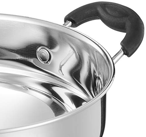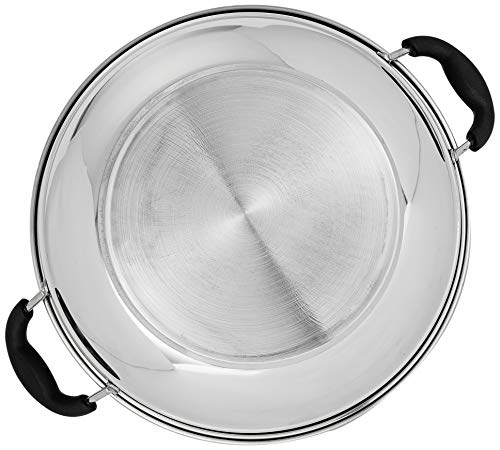 Steaming a wide variety of delicacies is made easy with Solimo Stainless Steel Induction Bottom Multi Kadai with 6 plates. This set offers 1 Kadhai, 2 Idli plates (7 cavities each), 1 Mini Idli plate (30 cavities), 2 Dhokla/Momo plates, 1 Pathra plate; making it comfortable and complete cookware for steaming the treats like Dhokla, Pathra, Idlis and Momos. Its heavy gauge induction bottom renders it a compatible fit for daily use on induction cooking as well as a gas stove. The ease of handling is enhanced with its cool touch Bakelite knob that does not heat up and smooth fit between the plates and the kadhai.