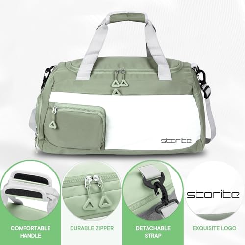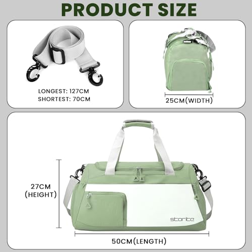 Storite Nylon 50 cms Imported Travel Duffle Bag Multi- Pocket Sports Shoulder Bag for Women with Wet Pocket & Shoe Compartment Weekender Overnight Travel Luggage Bag (Green – 50 x 25 x 27 cm)