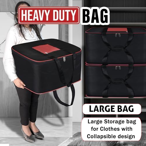Storite Nylon Big Underbed Storage Bag Moisture Proof Cloth Organiser with Zippered Closure and Handle(BlackRed, 54x46x28cm) Rectangular