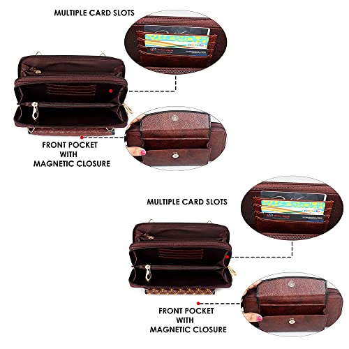 The Clownfish Combo of 2 Diamond Ladies Wallet with Front Mobile Pocket (Dark Brown)