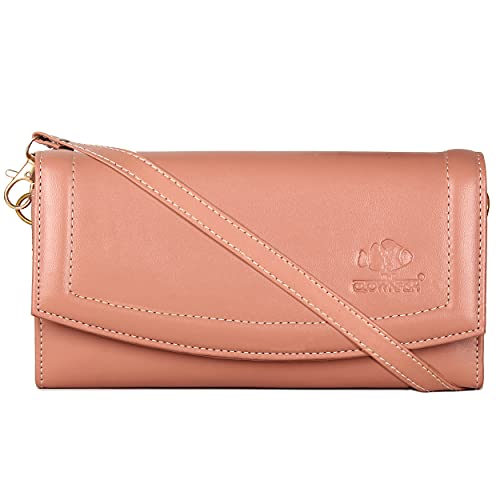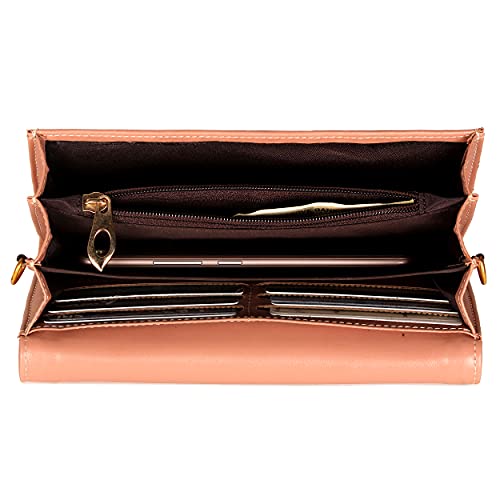 CONVENIENT DESIGN: This wallet has been provided with main compartment with a snap flap closure that opens to reveal two main pockets spaced with a zip pocket in the middle to hold your cash, coins, bills etc. Multiple card slots for placing your credit and debit cards. Back slit pocket for added utility. Comes with a shoulder belt that gives an elegant look to the wallet and can be used as a sling bag too.