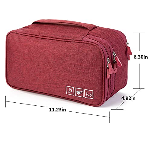 To fit all of your underwear, panties, bras, cosmetics, socks, accessories, and toiletries on the go, Dimension: 10.8″ x 5.9″ x 5.1″Bra Underwear Storage Bag Travel Lingerie Pouch Toiletry Organizer Handbag Cosmetic Makeup Bag Luggage Storage Case For Cosmetics, Toiletries, Hotel, Home, Bathroom, Airplane LADY FIRST- Exclusively designed for women frequent fliers, and travelers