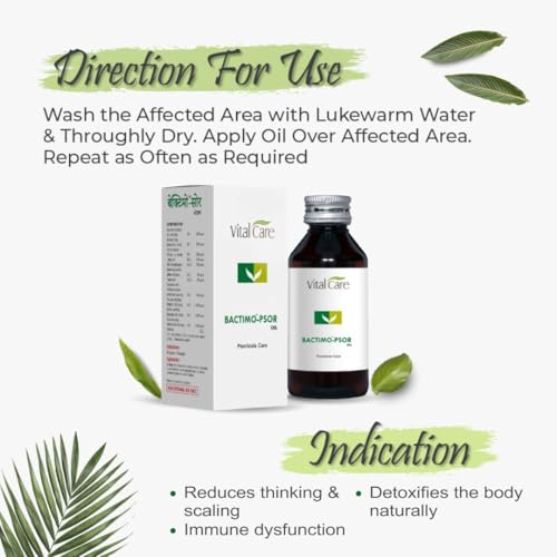 Explore a wide range of Bactimo Psor Oil from the house of Vital Care, available on Amazon. Made with Swet Kutaj, Tila Oil, Jatyadi Oil, and Neem Oil, this Ayurvedic formulation is designed to care for your skin naturally.