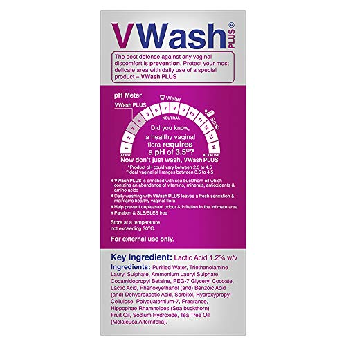 VWash PLUS has lactic acid which restores vaginal pH balance and is enriched with sea buckthorn oil & Tea Tree Oil which contains an abundance of vitamins, minerals, antioxidants & amino acids. Daily washing with VWash PLUS leaves a fresh sensation & maintains healthy vaginal flora. Vwash also helps prevent unpleasant odour & irritation in the intimate area. It is safe for daily use. VWash Plus is usable during periods as well.