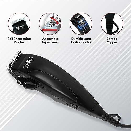 WAHL Home Cut Black Edition Hair Clipper Complete Hair Cutting Clipper with Thumb Adjustable Taper & Travel Pouch, Powerful Electromagnetic Motor with 14,400 strokes per min, Self-Sharpening Carbon Steel Blades, 10 Cutting Lengths, 2 Years Warranty; 9243-5724