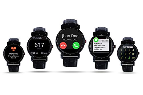 This cool watch can transform your simplest of looks to the trendiest. This magnificent watch with a full round face will astonish you with quality of workmanship and variety of built-in functions. The vivid radian display is surely going to amaze you.Compatible with Android 4.3+ and iOS 7+ CE and RoHS European standard certified. Primary features: Making/receiving phone calls, receive message notifications, changeable band, IP54 water splash proof, Bluetooth 4.0, vibrations, microphone, anti lost, heart rate monitor, sleep monitor, music and camera control, call logs and Sync contacts(upto 500 names)
