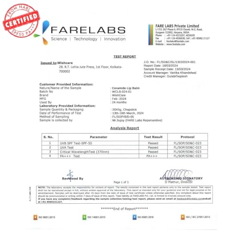 TINTED, NON STICKY & LONG LASTING: WishCare Ceramide Lip Balm comes in a light pink natural tint color and repairs your chapped lips. It is enriched with natural butters like shea and cocoa butter which makes it glide on smoothly, creating a comfortable and non-greasy feel on the lips.